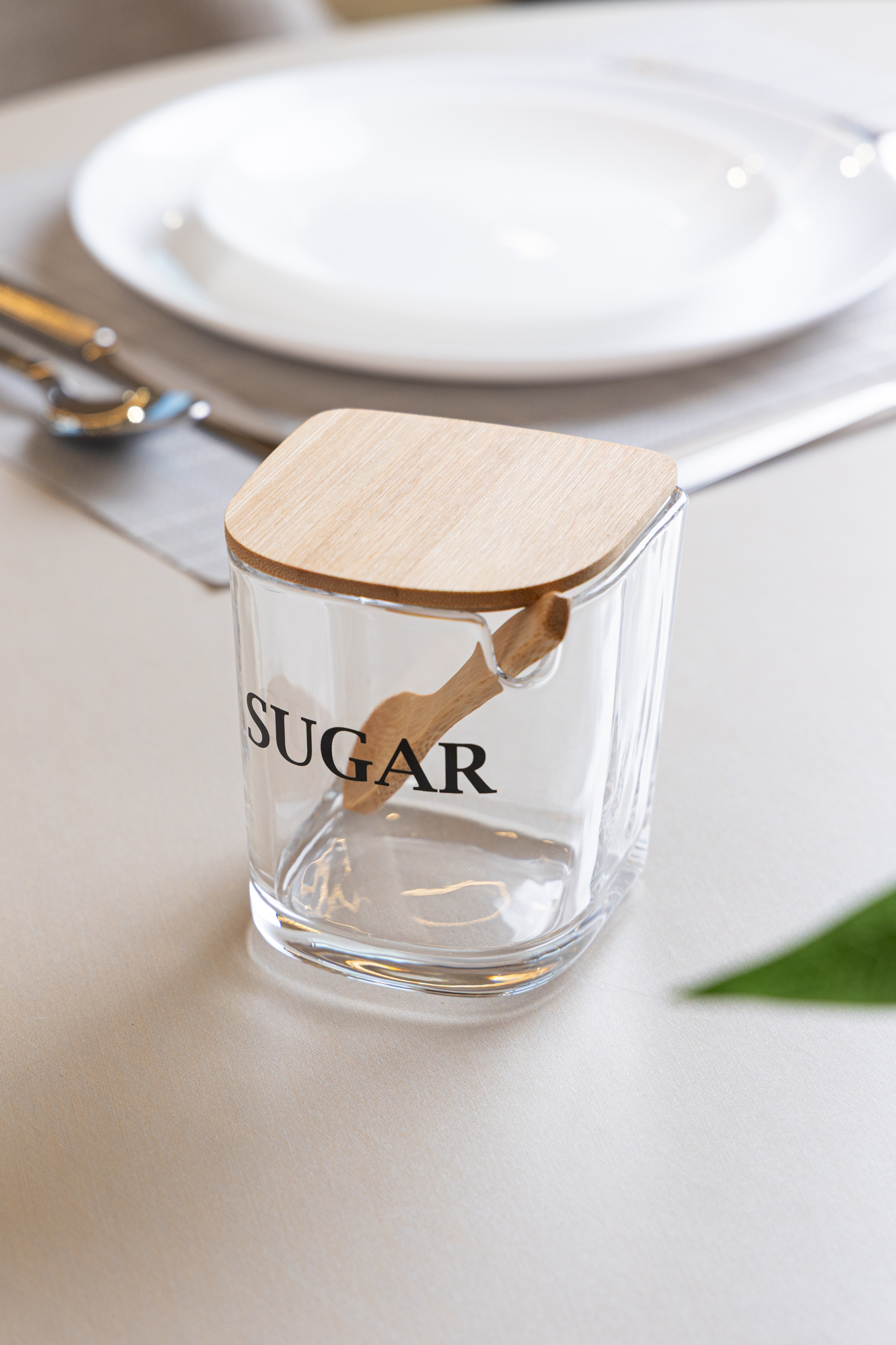 Açucareiro com Tampa e Colher de Bambu Basic 9cm x 11cm Vidro – Wolff